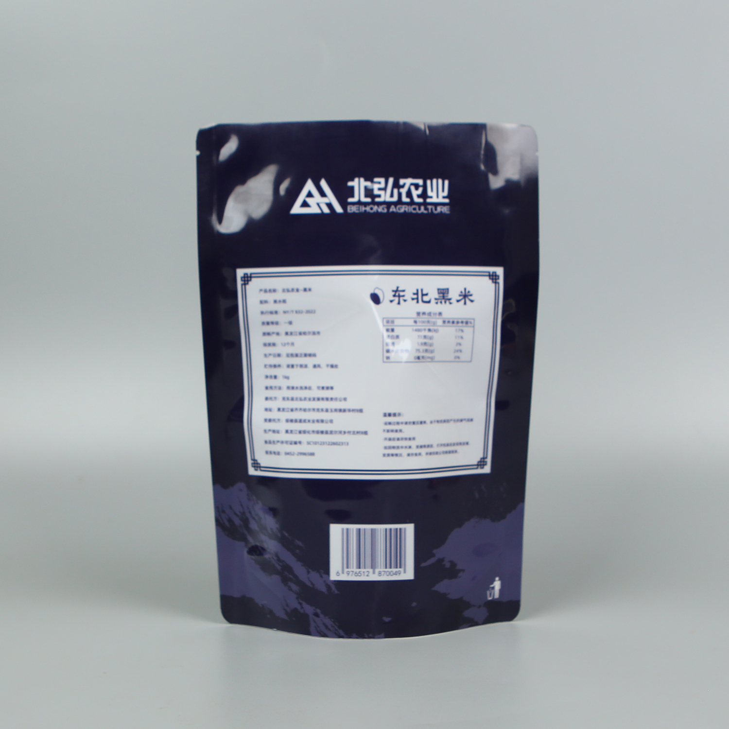 產(chǎn)品名稱:1kg東北黑米+亮面塑料復合+自立袋