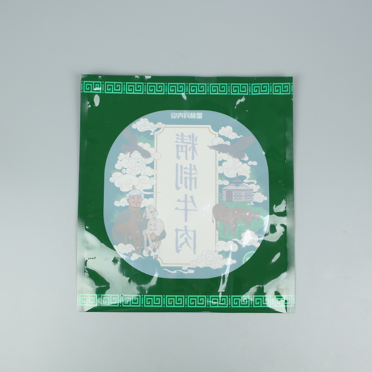 精致羊肉+亮面塑料復合+三邊封